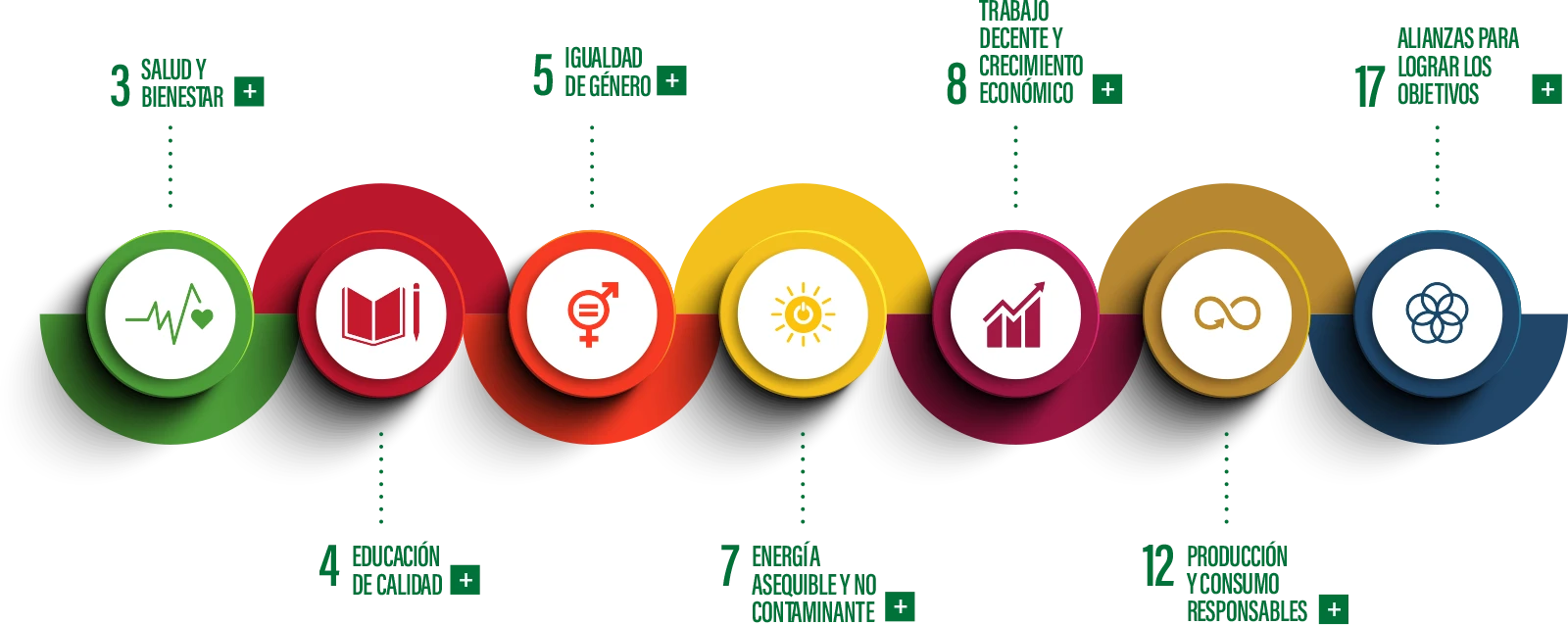 Contribuimos a 44 metas de la Agenda 2030, a través de siete Objetivos de Desarrollo Sostenible.